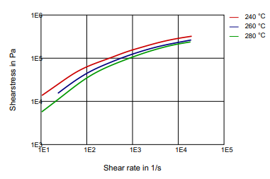 - Injection temperature (min-recommended-max): 260-270-280°C